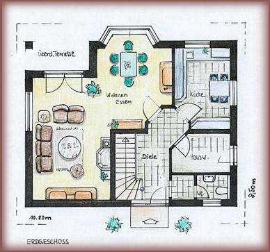 Das Haus bietet 4 Zimmer, Küche, Bad, WC und Hauswirtschaftsraum mit einem Raumangebot von insgesamt 134,44 m².