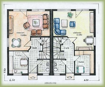 Je Haushälfte 4 Zimmer, Küche, Bad und WC mit einem Raumangebot von insgesamt 97,34 m².